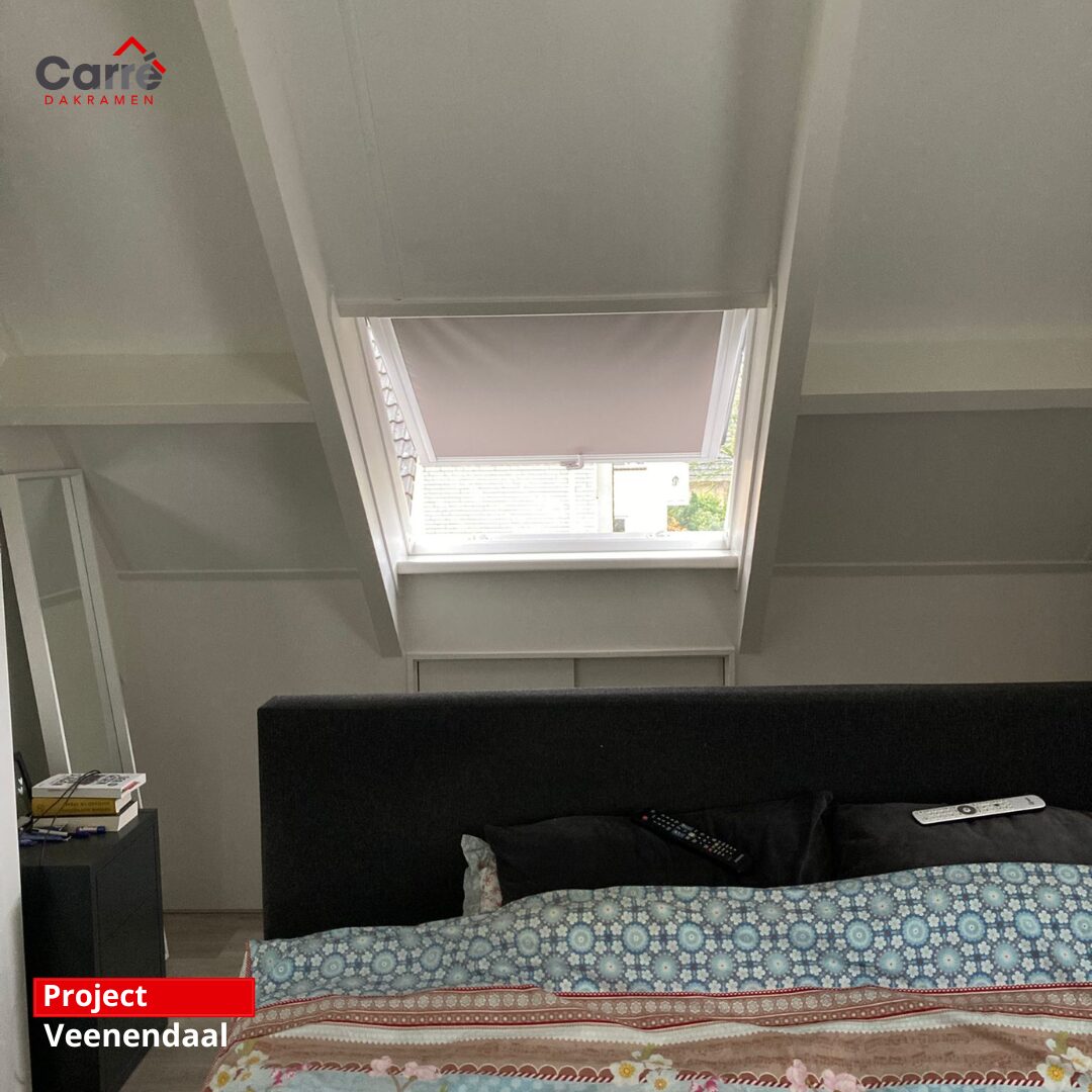 Geplaatst: Winlow S6A afm. 114 x 118 cm, Velux SK06 en Velux uitzet/tuimel dakraam incl. Plissé gordijn en verduisteringsgordijn